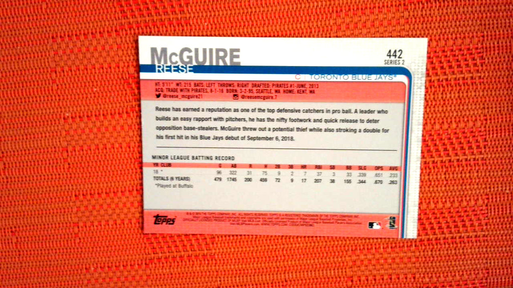 2019 Topps Series 2 Refractor #442 Reese McGuire