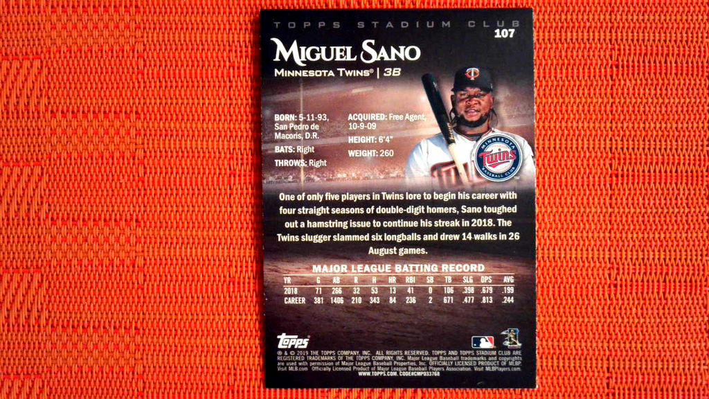 2019 Topps Stadium Club Black Foil #107 Miguel Sano
