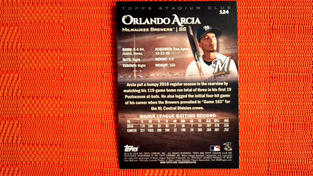 2019 Topps Stadium Club Black Foil #124 Orlando Arcia