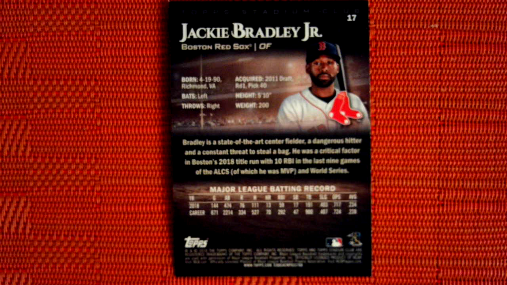 2019 Topps Stadium Club Black Foil #17 Jackie Bradley Jr.