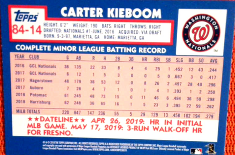 2019 Topps Update Carter Kieboom RC 1984 35th Aniv #84-14