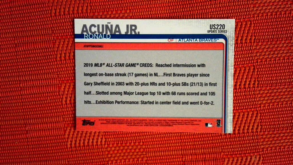 2019 Topps Update Series ~ Ronald Acuna Jr. 2nd Year #US220 Atlanta Braves