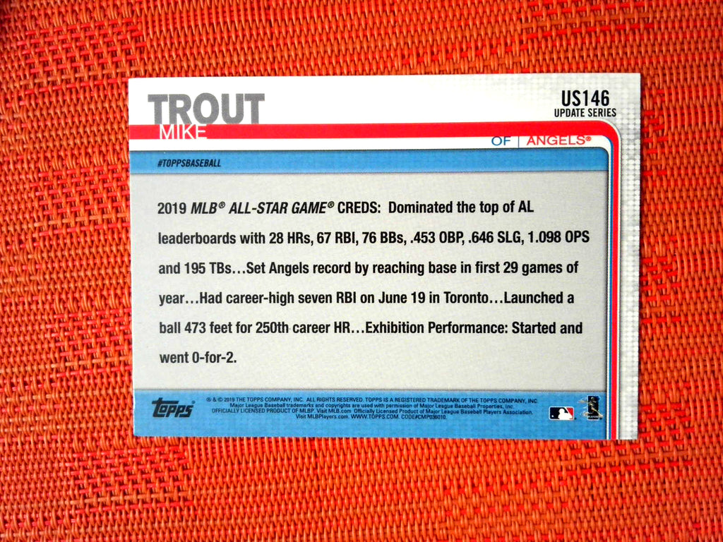 2019 Topps Update #US146 Mike Trout ASG ALL STAR LOS ANGELES ANGELS