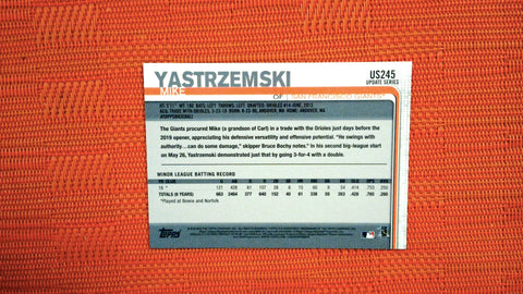 This is a nice example of a 2019 Topps Update #US245 Mike Yastrzemski .