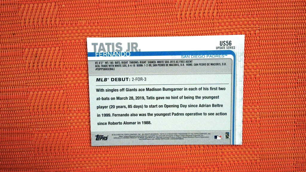 This is a nice example of a 2019 Topps Update #US56 Fernando Tatis Jr. .