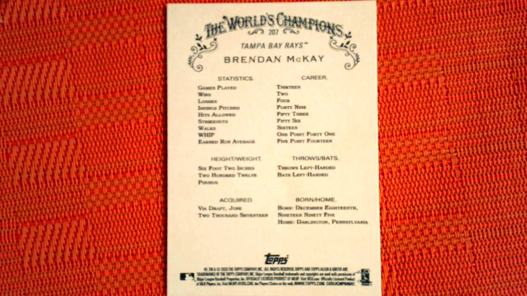 2020 ALLEN AND GINTER BRENDAN MCKAY ROOKIE CARD# 207