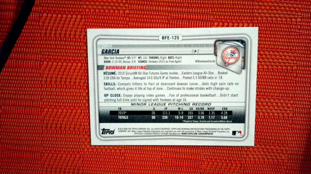 2020 Bowman 1st Edition# BFE-125 Devi Garcia New York Yankees