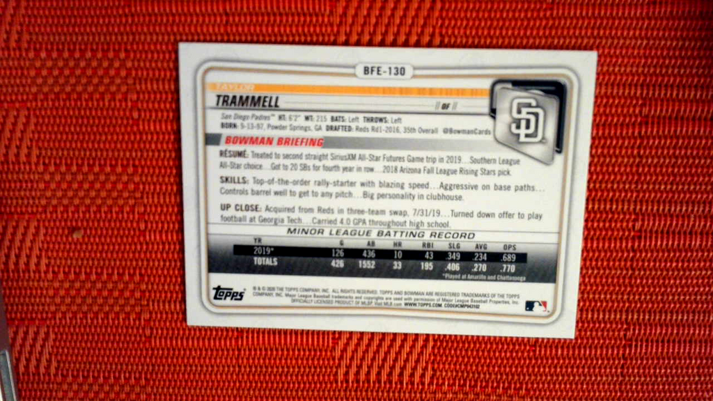 2020 Bowman 1st Edition Sky Blue Foil Taylor Trammell #BFE-130 Mariners