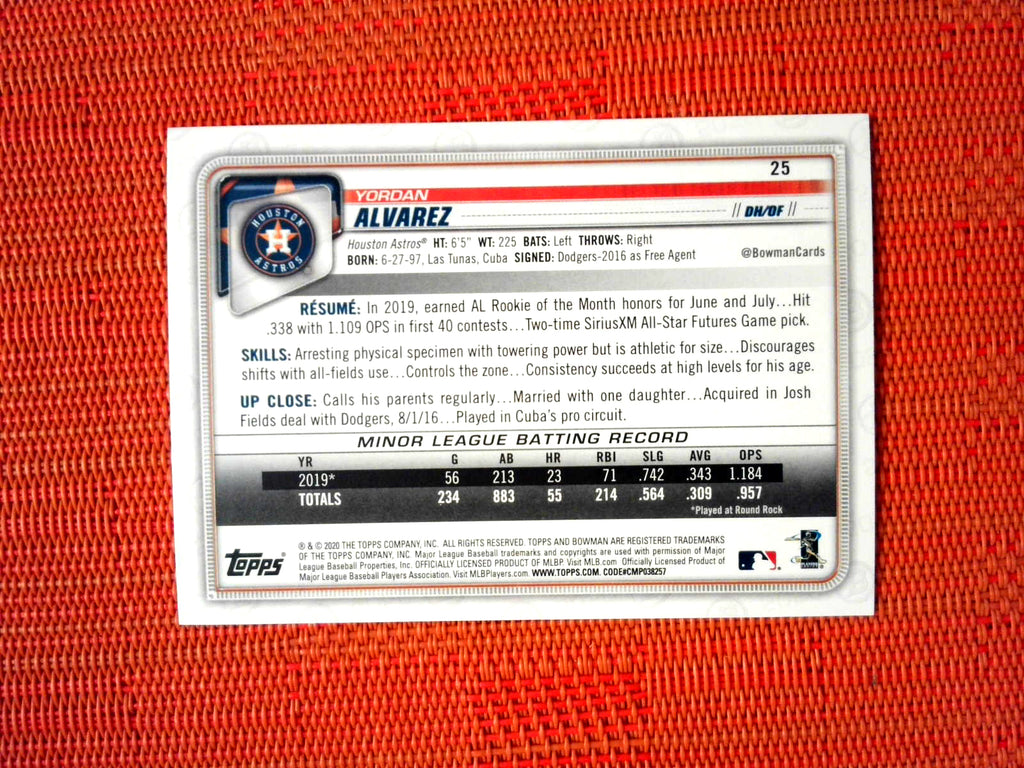 2020 Bowman #25 Yordan Alvarez - Houston Astros RC (Base)