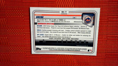2020 Bowman Chrome Draft Isaiah Greene 1st Bowman Refractor SP New York Mets