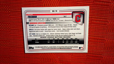 2020 Bowman Chrome Sky Blue Refractor Tyler Freeman Cleveland Indians