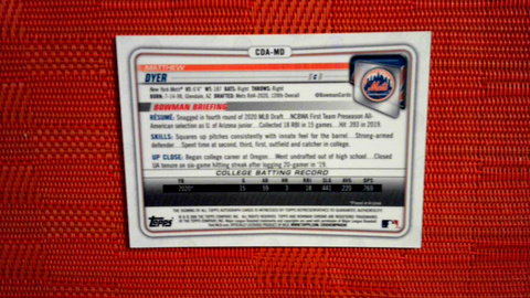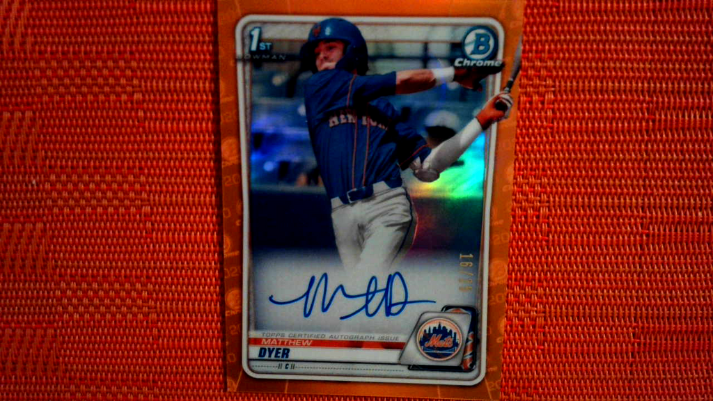 2020 Bowman Draft Matthew Dyer Chrome Draft Picks Orange Auto #/25 Mets