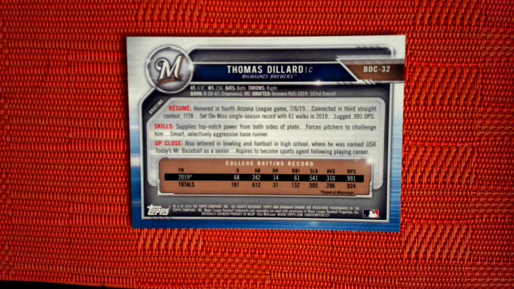 2020 Bowman Draft Purple Chrome 103/250 #BDC-31 Thomas Dillard-1st Bowman