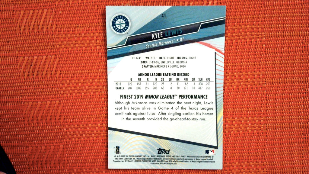 This is a nice example of a 2020 Finest #41 Kyle Lewis .