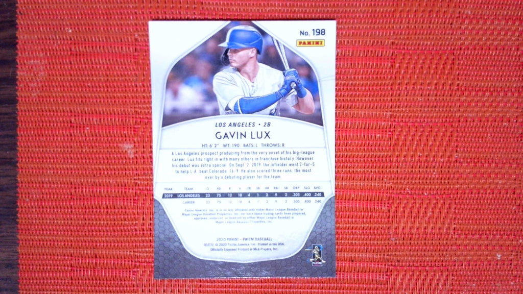 This is a nice example of a 2020 Panini Prizm #198 Gavin Lux .