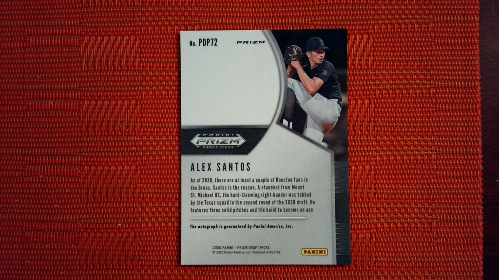 2020 Panini Prizm Draft Picks Red & Purple Auto #PDP72 Alex Santos Baseball