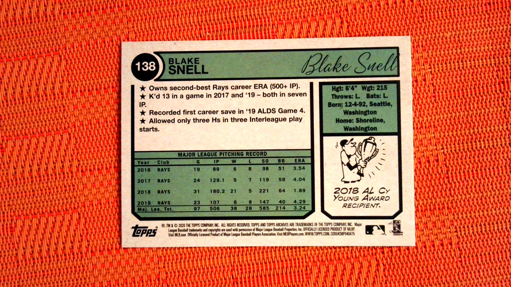 2020 Topps Archives Baseball Green #138 Blake Snell 2/15 Target Mega Box