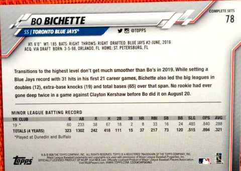 2020 Topps Complete Sets #78 Bo Bichette- Rookie