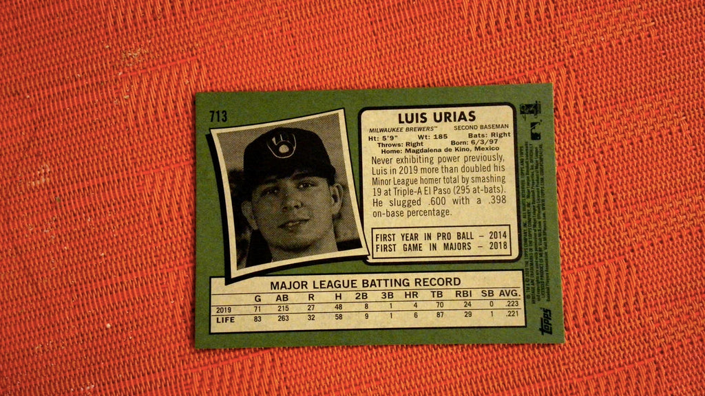 This is a nice example of a 2020 Topps Heritage #713 Luis Urias .