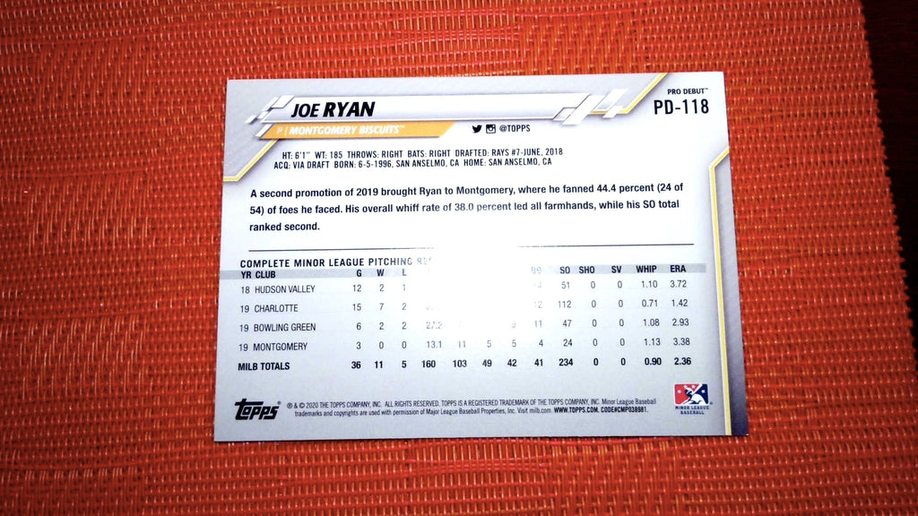 2020 Topps Pro Debut Base #PD-116 Joe Ryan Baseball