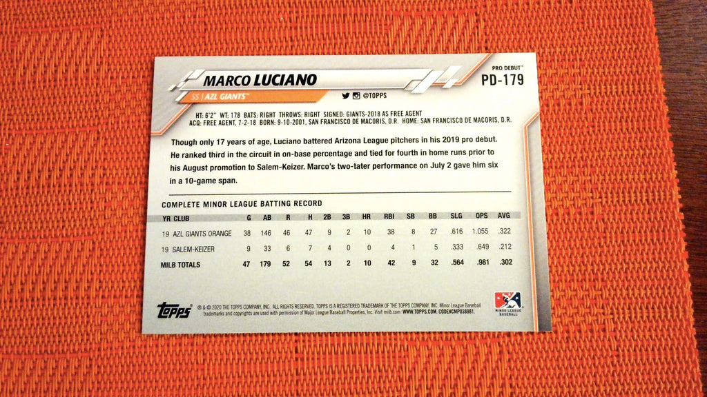 2020 Topps Pro Debut Base #PD-179 Marco Luciano Baseball