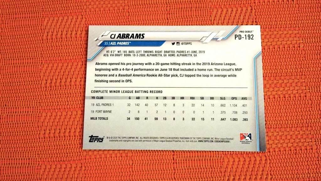 2020 Topps Pro Debut Base #PD-192 CJ Abrams Baseball