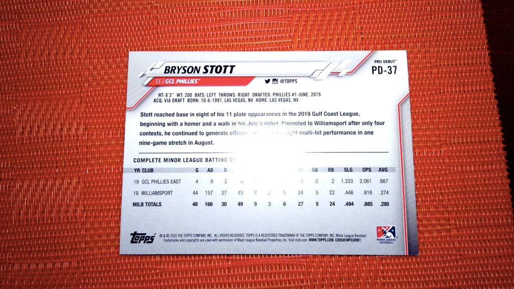 2020 Topps Pro Debut Base #PD-37 Bryson Stott Baseball