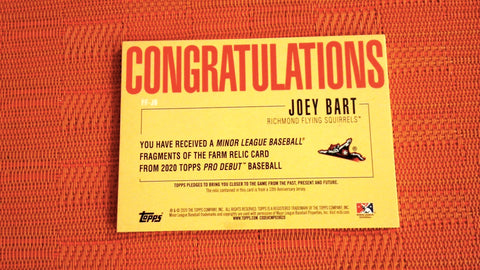 2020 Topps Pro Debut Fragments of the Farm #FF-JB Joey Bart Baseball