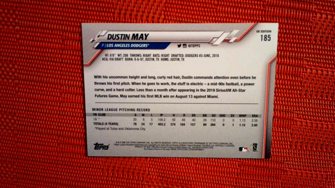 2020 Topps UK SP Edition Dustin May Rookie RC #185 Los Angeles Dodgers
