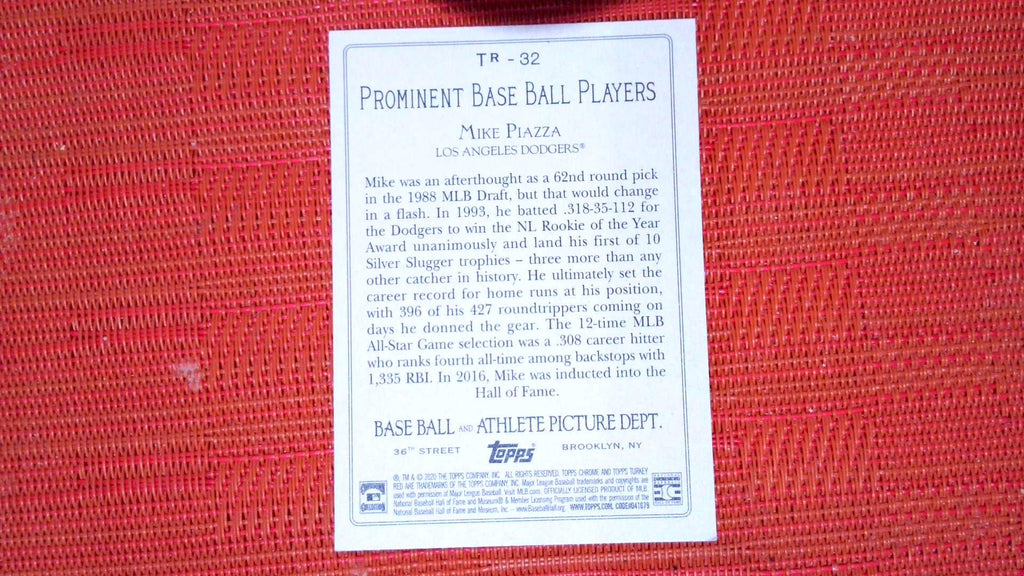 This is a nice example of a 2020 Topps Update #TR-32 Mike Piazza Turkey Red 2020.