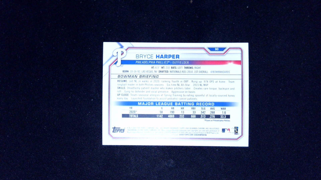 This is a nice example of a 2021 Bowman #90 Bryce Harper .