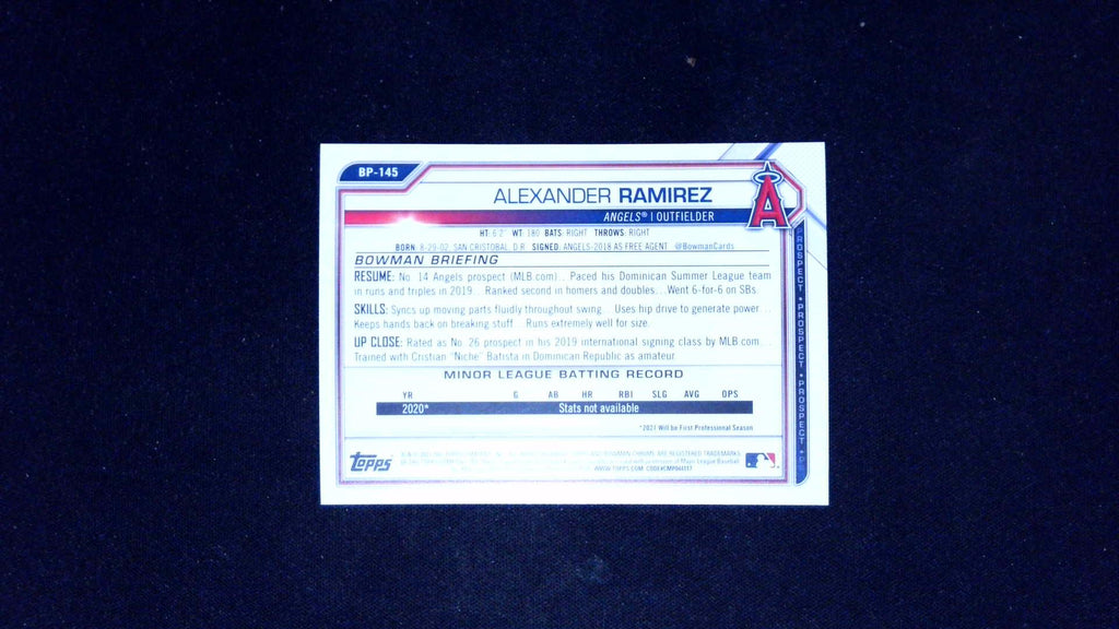 This is a nice example of a 2021 Bowman #BP-145 Alexander Ramirez Prospects.