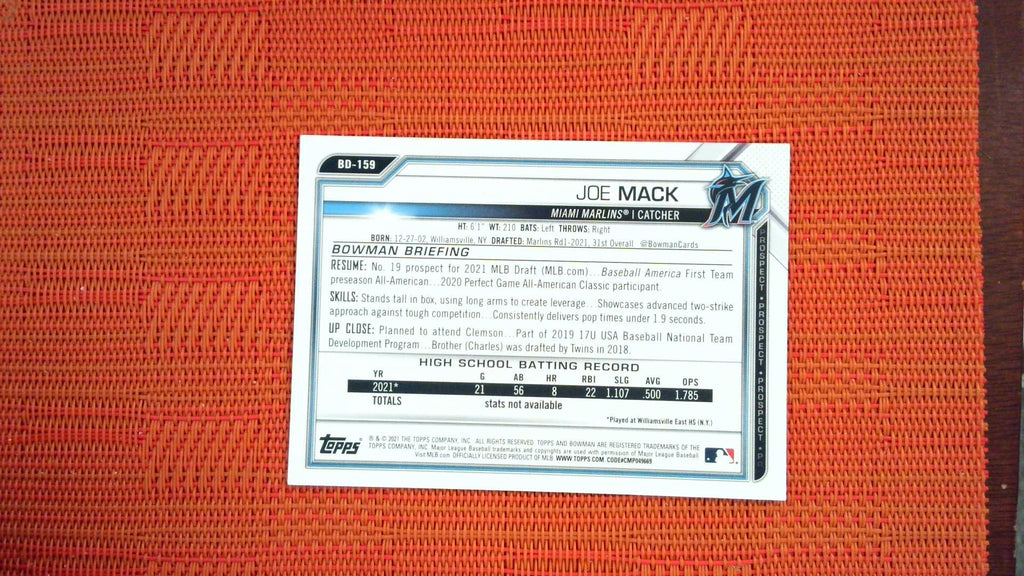 2021 Bowman Draft #BD-159 Joe Mack Blue /150 Baseball