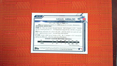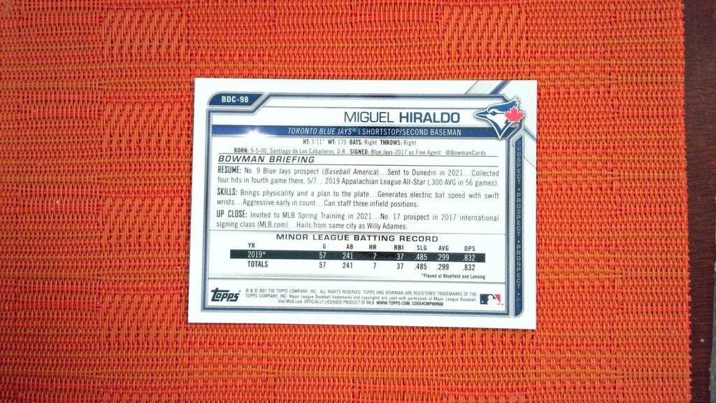 2021 Bowman Draft #BDC-98 Miguel Hiraldo Blue Refractor /150 Baseball