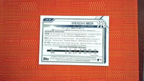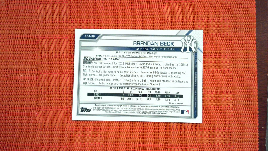 2021 Bowman Draft #CDA-BB Brendan Beck Chrome Draft Pick Autograph Baseball