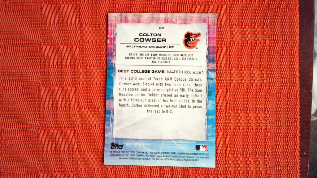 2021 Bowman’s Best #32 Colton Cowser Gold Lava /75 Rookie Baseball