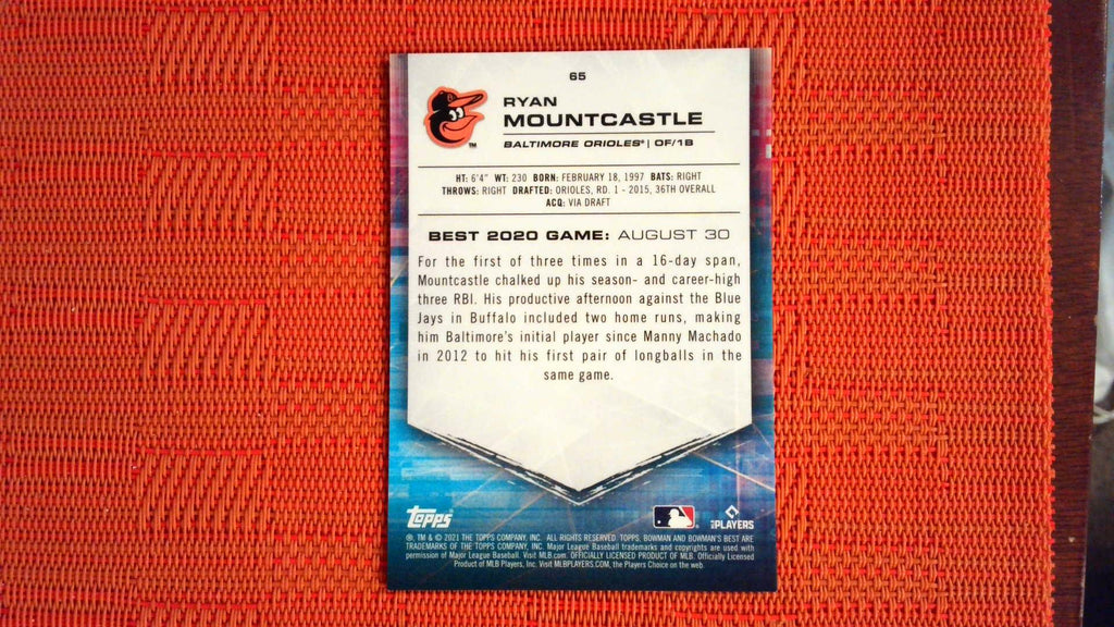 2021 Bowman’s Best #65 Ryan Mountcastle Purple /250 Rookie Baseball