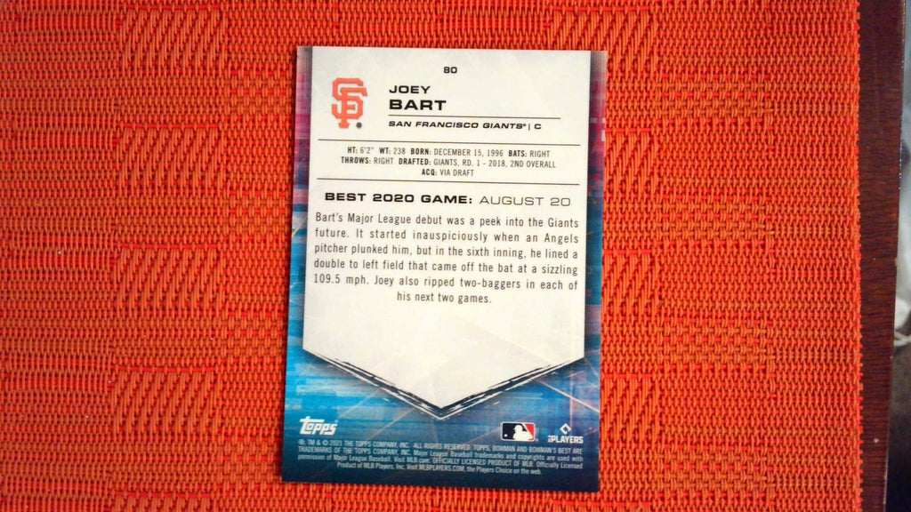 2021 Bowman’s Best #80 Joey Bart Aqua Lava /199 Rookie Baseball
