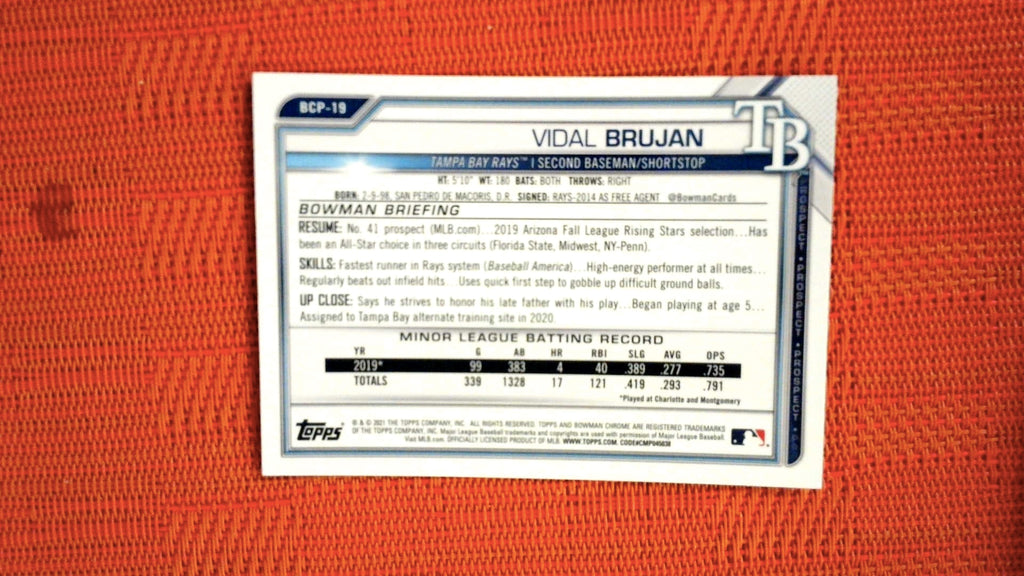 In 2021 Vidal Brujan played for the Tampa Bay Rays.