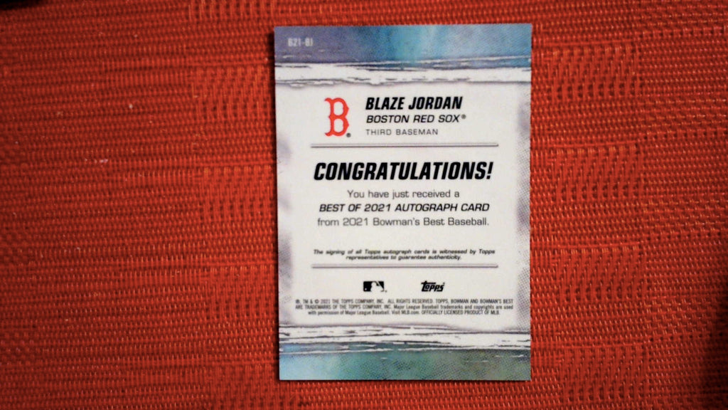This is a nice example of a 2021 Bowman's Best #B21-BJ Blaze Jordan Best of 2021 Autographs.