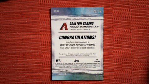 2021 Bowman's Best #B21-DV Daulton Varsho 26/75 Best of 2021 Autographs Gold Lava Refractor