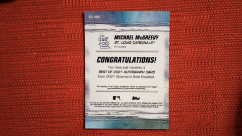This is a nice example of a 2021 Bowman's Best #B21-MMC Michael McGreevy Best of 2021 Autographs.
