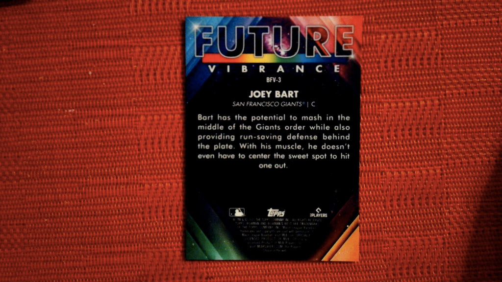 This is a nice example of a 2021 Bowman's Best #BFV-3 Joey Bart Bowman Future Vibrance.