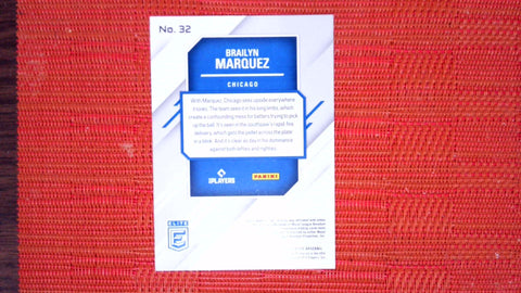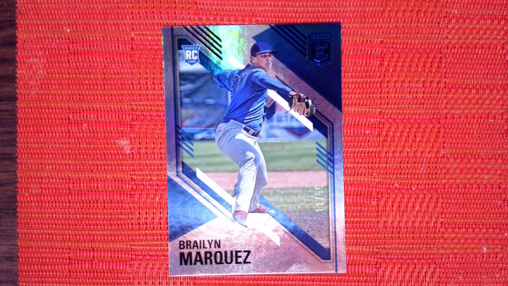 This is a nice example of a 2021 Panini Chronicles #32 Brailyn Marquez Elite Blue.