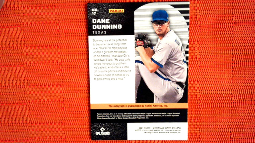 2021 Panini Chronicles Zenith Autographs #17 Dane Dunning- Rookie