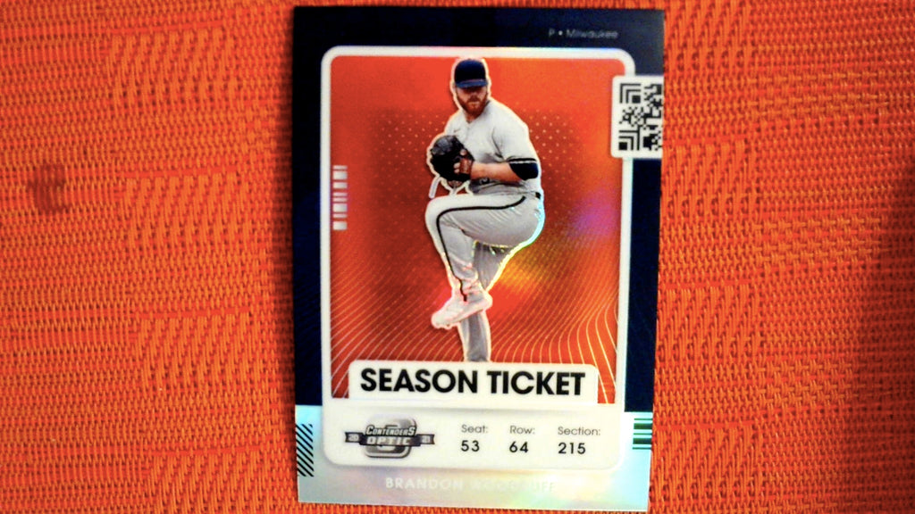 This is a nice example of a 2021 Panini Contenders #36 Brandon Woodruff Optic Red.