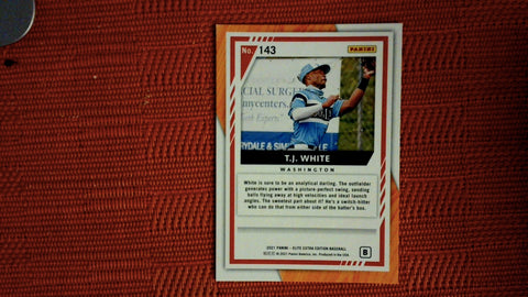 This is a nice example of a 2021 Panini Elite Extra Edition #143 T.J. White Prime Numbers B.