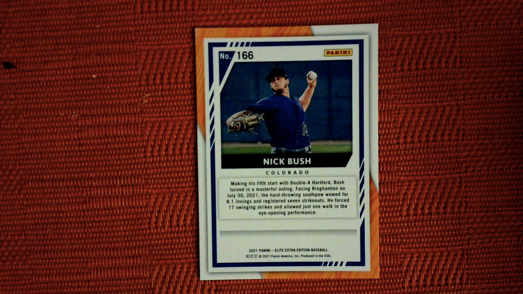 This is a nice example of a 2021 Panini Elite Extra Edition #166 Nick Bush Status Green.