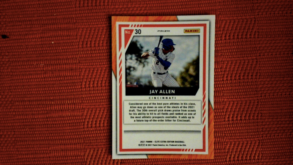 This is a nice example of a 2021 Panini Elite Extra Edition #30 Jay Allen .