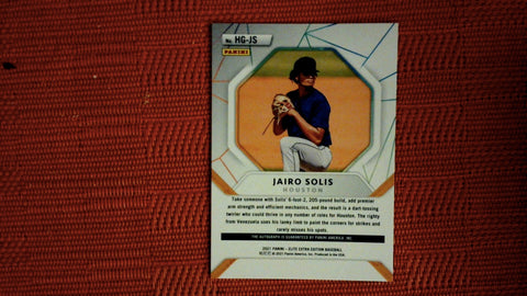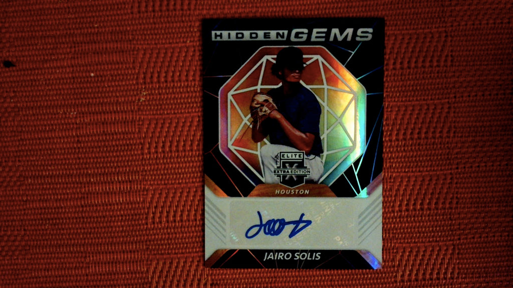 This is a nice example of a 2021 Panini Elite Extra Edition #HG-JS Jairo Solis Hidden Gems Signatures Black.